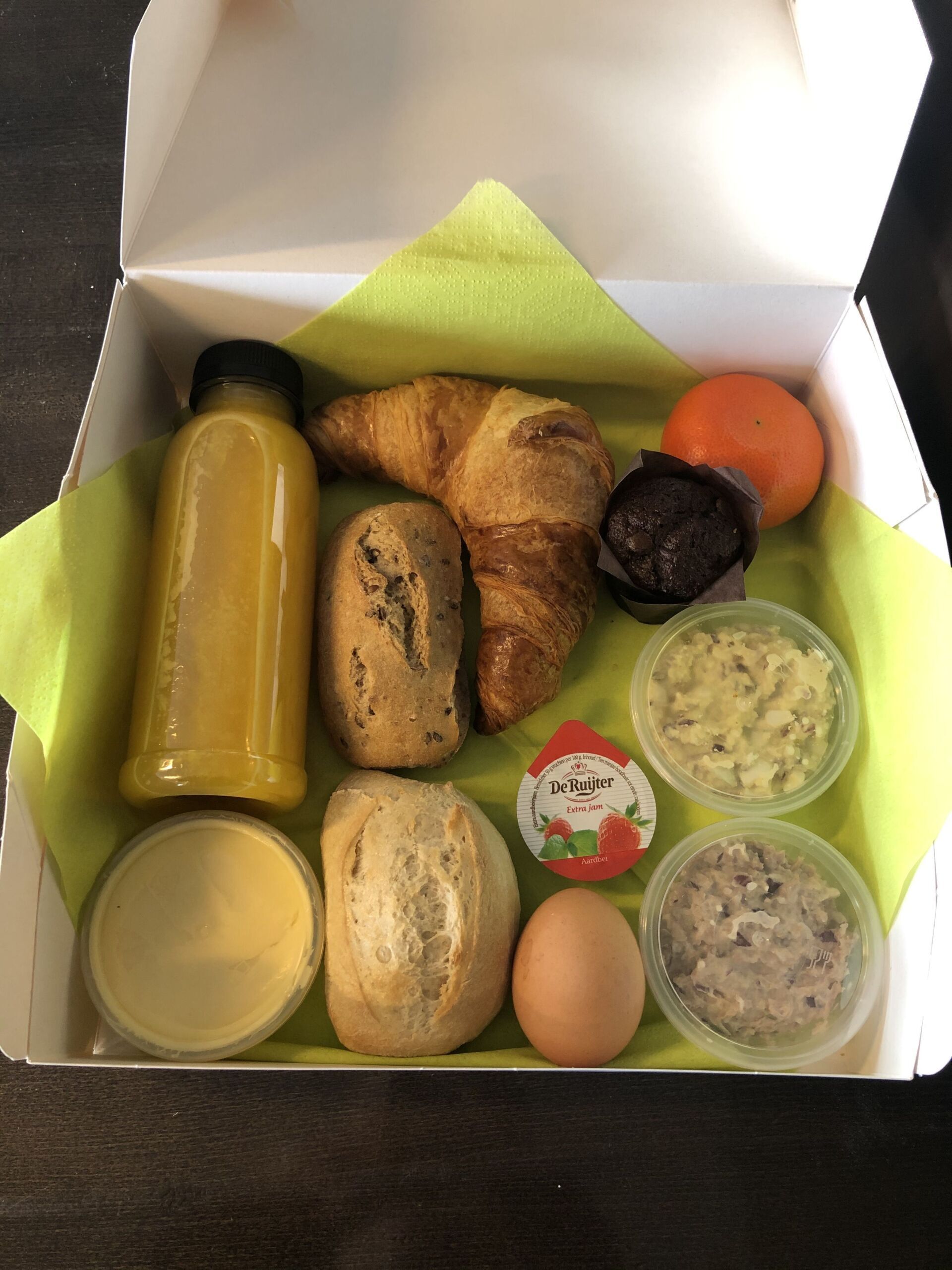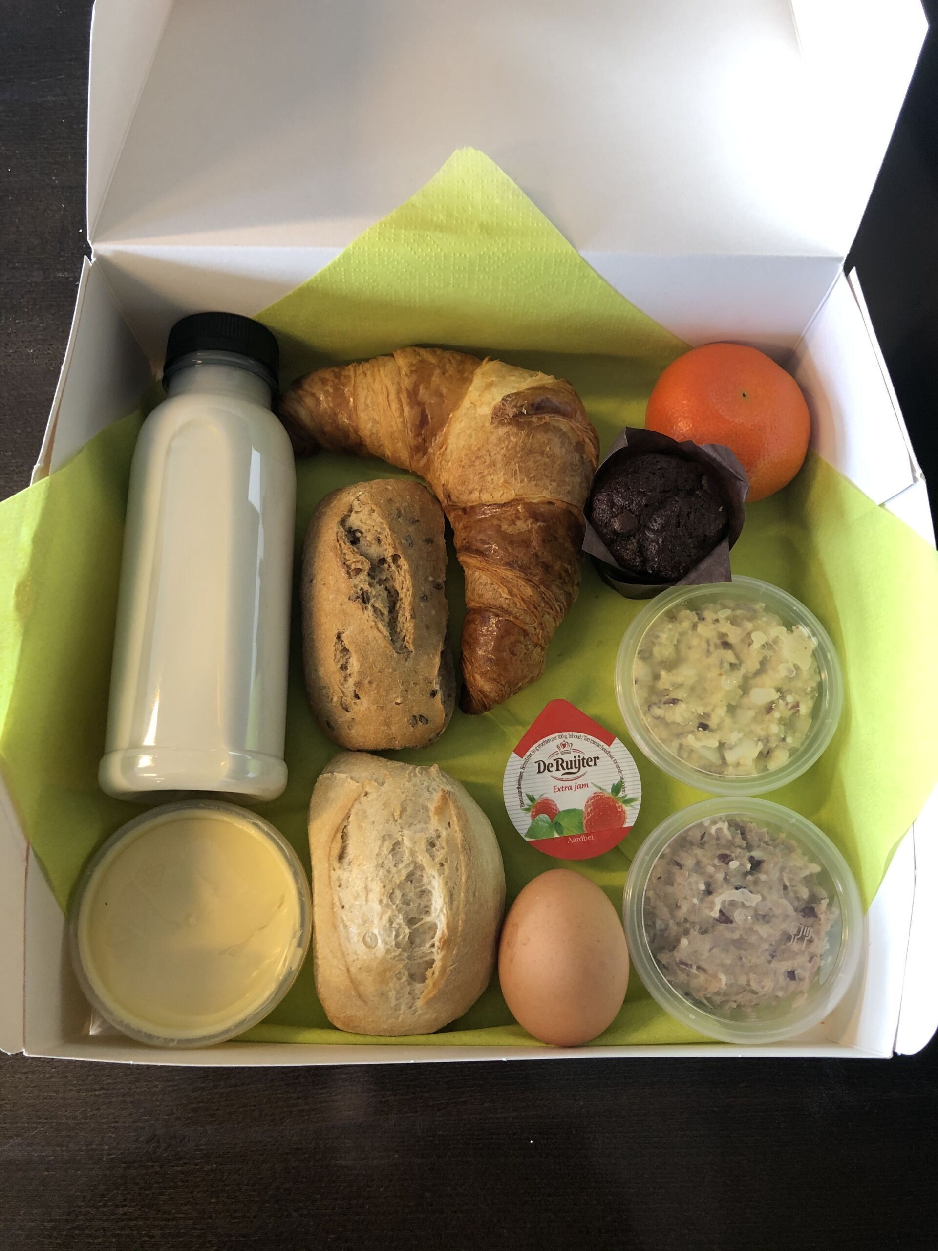 Voor slechts € 8.95 kunt u bij ons een goed gevulde ontbijt box bestellen en deze de volgende dag ophalen.